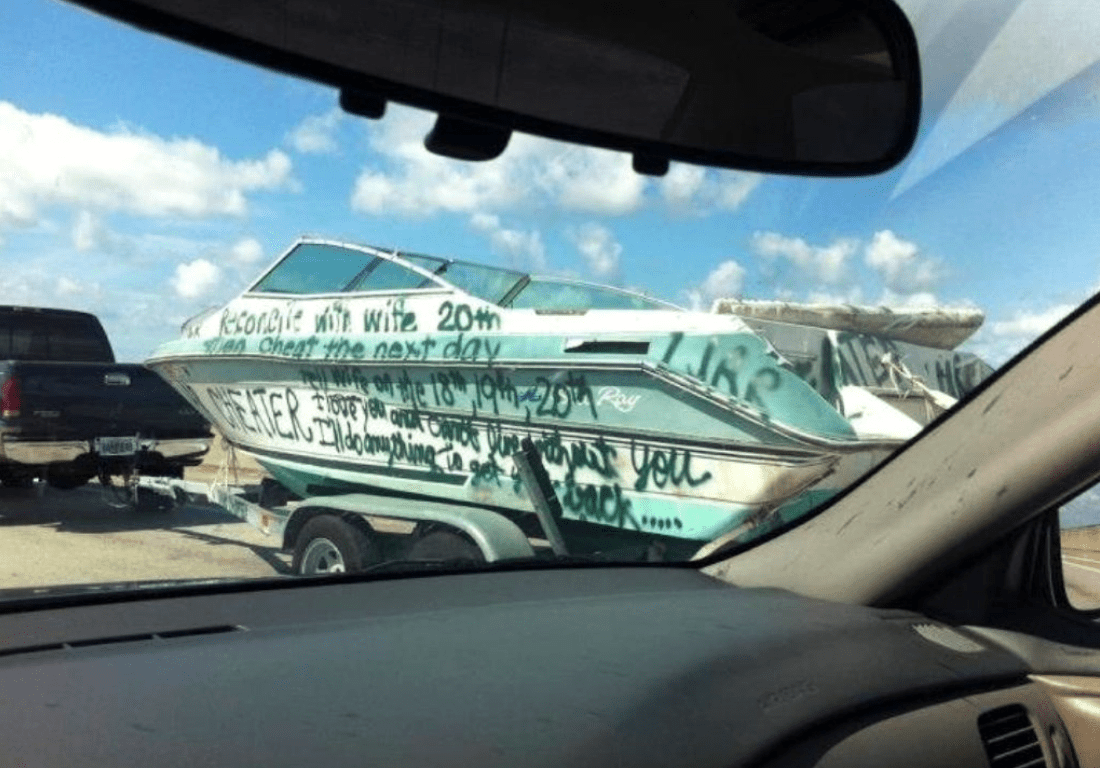 Si vas a traicionar, es mejor que te asegures de saber cuánto valdrá para ti. Le costó a este hombre todo el trabajo de pintura en su costoso barco de esquí. Si piensas que no podría ser tan costoso, considera preguntarte por qué lo sacaría al agua sin repararlo.