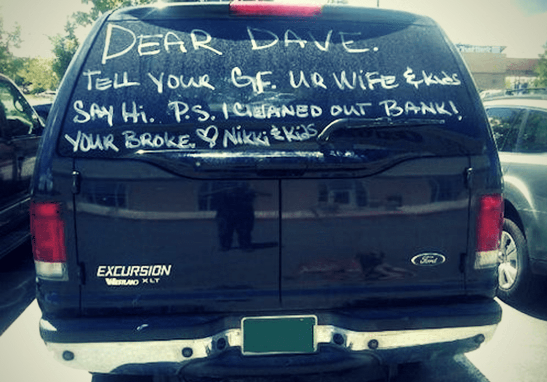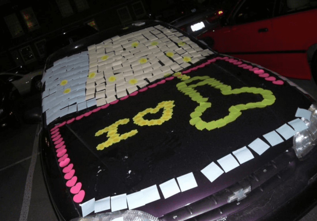 Antes de terminar la relación, algunas personas necesitan tener pruebas absolutas, sin la más mínima sombra de dudas, de que su pareja la está engañando. Sin embargo, una vez que sepa la verdad, ¿qué debería hacer con todas esas pruebas? Bueno, por supuesto puede devolvérselas a su propietario legítimo, ¡extendiendo todos esos preciosos recuerdos sobre su automóvil, envueltos en una pantalla de papel para que todos puedan verlos!