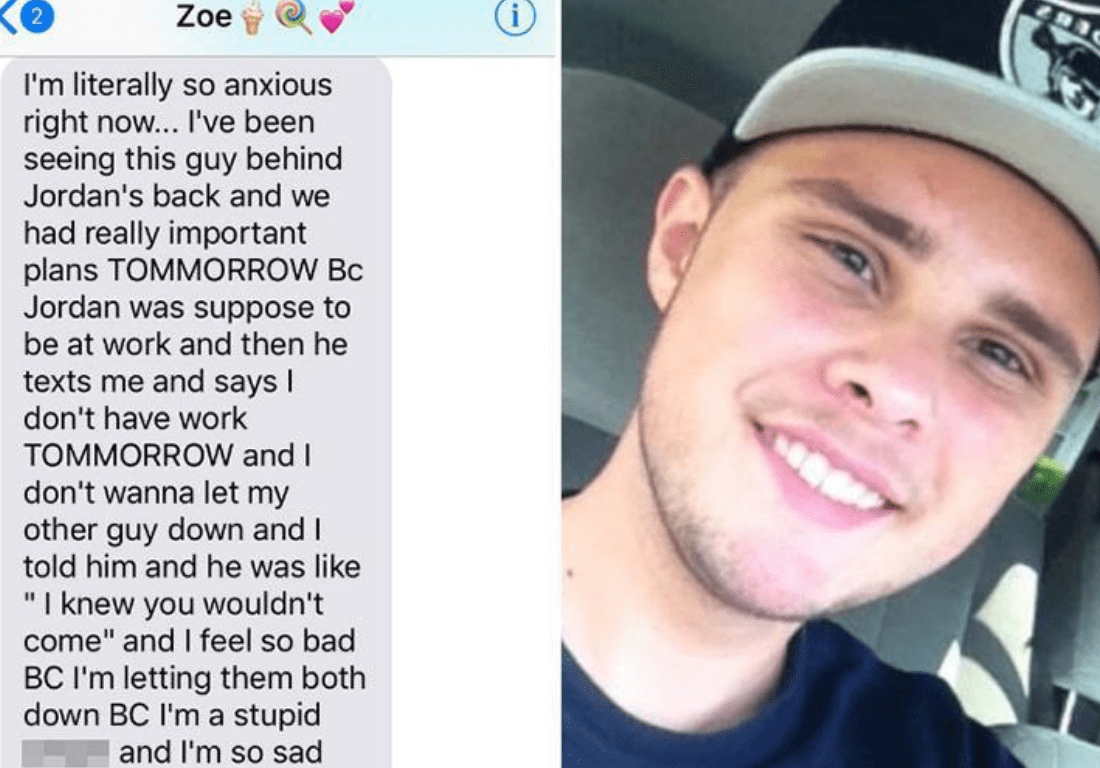 Cuando haces malabarismos con tus compañeros, tanto en la vida real como en los mensajes, las cosas tienden a confundirse bastante rápido. Zoe se sentía ansiosa porque no podía mantener felices a sus dos novios, así que decidió confiar en un amigo a través de un mensaje de texto. Sin embargo, además de ser una traicionera, a Zoe le faltó ir al departamento que reparte las células cerebrales, porque le terminó enviando sin querer un confesionario completo a su novio de hace 2 años, Jordan. Quién rápidamente subió el mensaje a Twitter con esta leyenda: