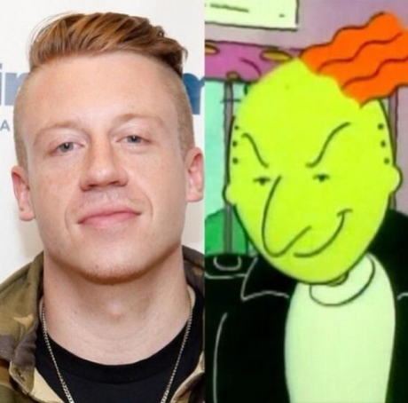 Bueno, ya sabes, Macklemore tiene un doble y es Roger Klotz. De Doug, en el show de Nickelodeon.
