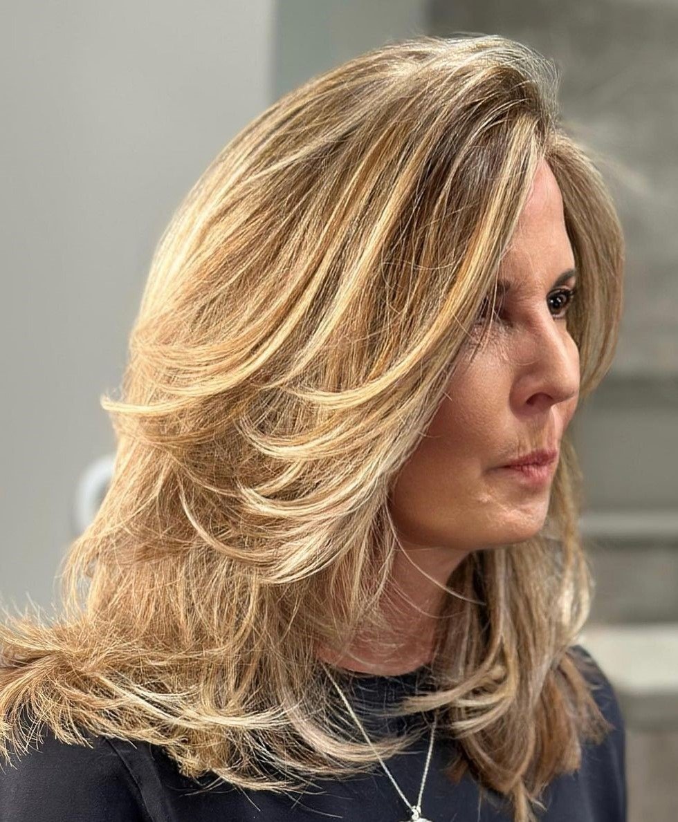 For mature women with long hair, a common issue arises where hair thickens towards the ends, directing attention downwards.