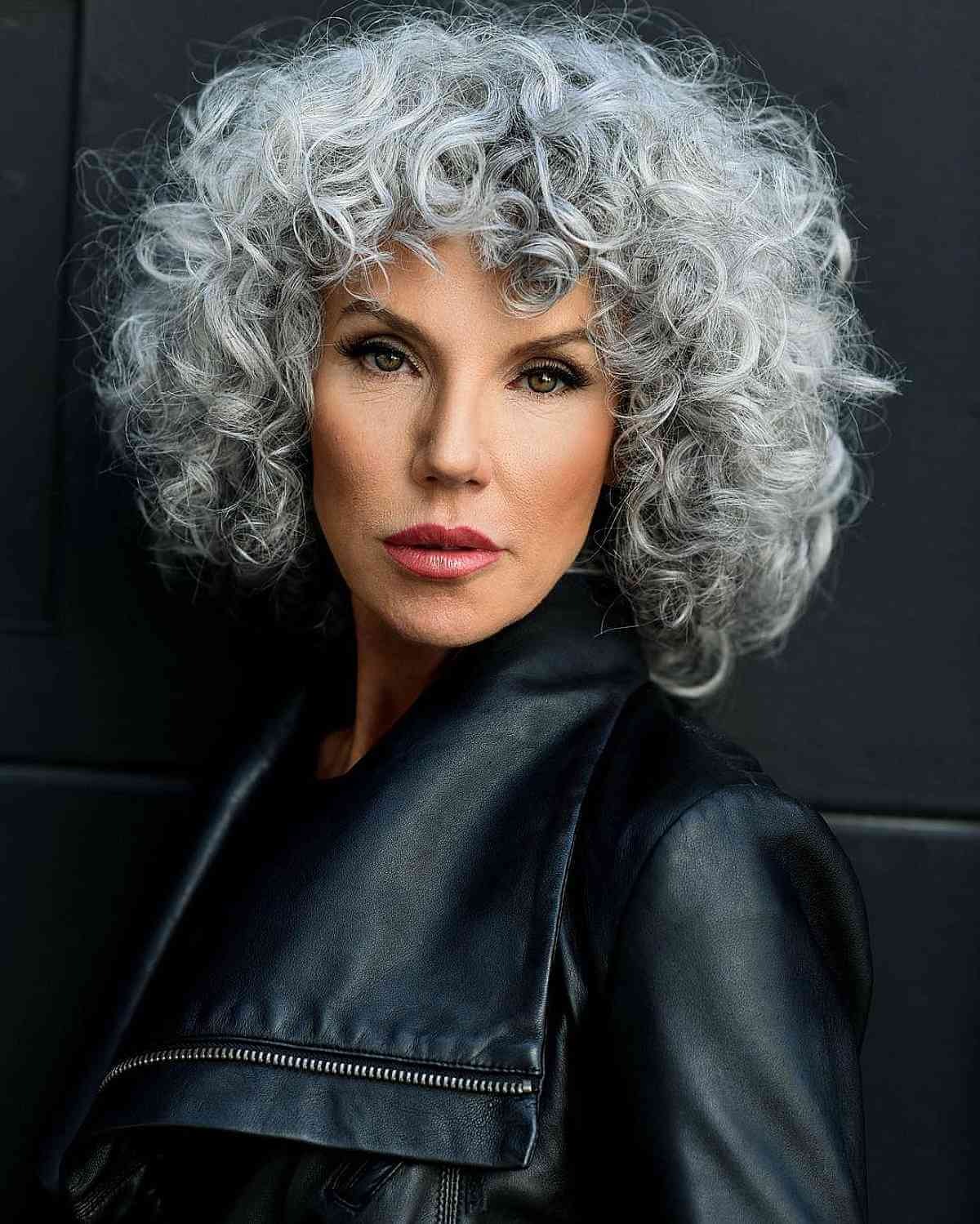 A wispy silver curly hairstyle is a versatile and elegant choice that transcends age boundaries. Whether you’re a young woman or more mature, this style can beautifully complement your look.