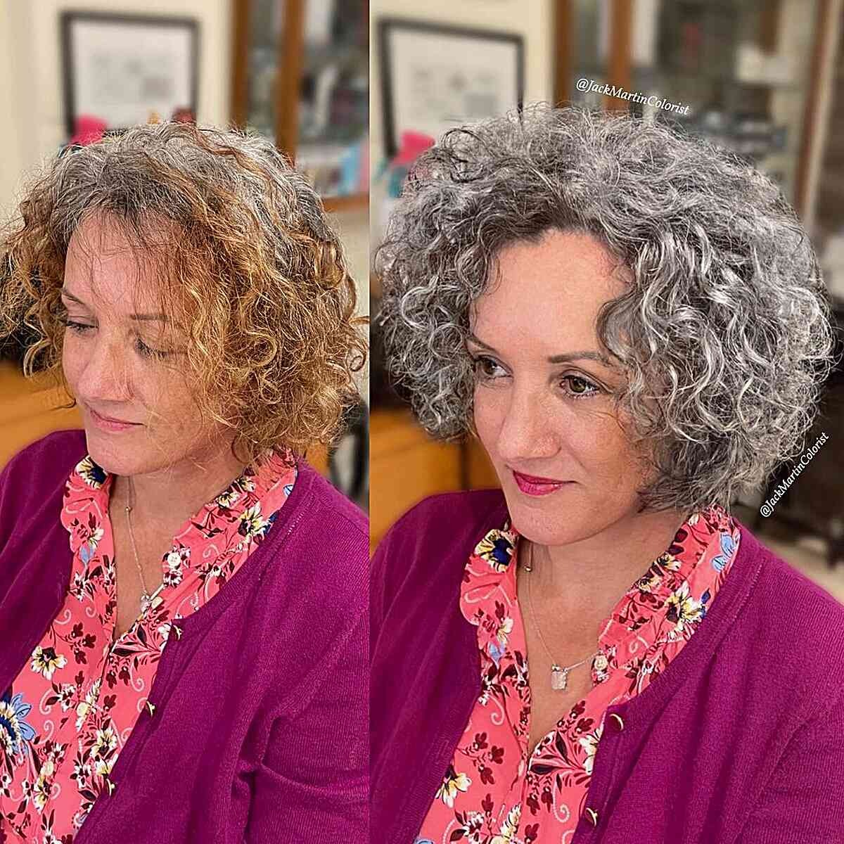 Elegant Silver Curly Bob with Uniform Length