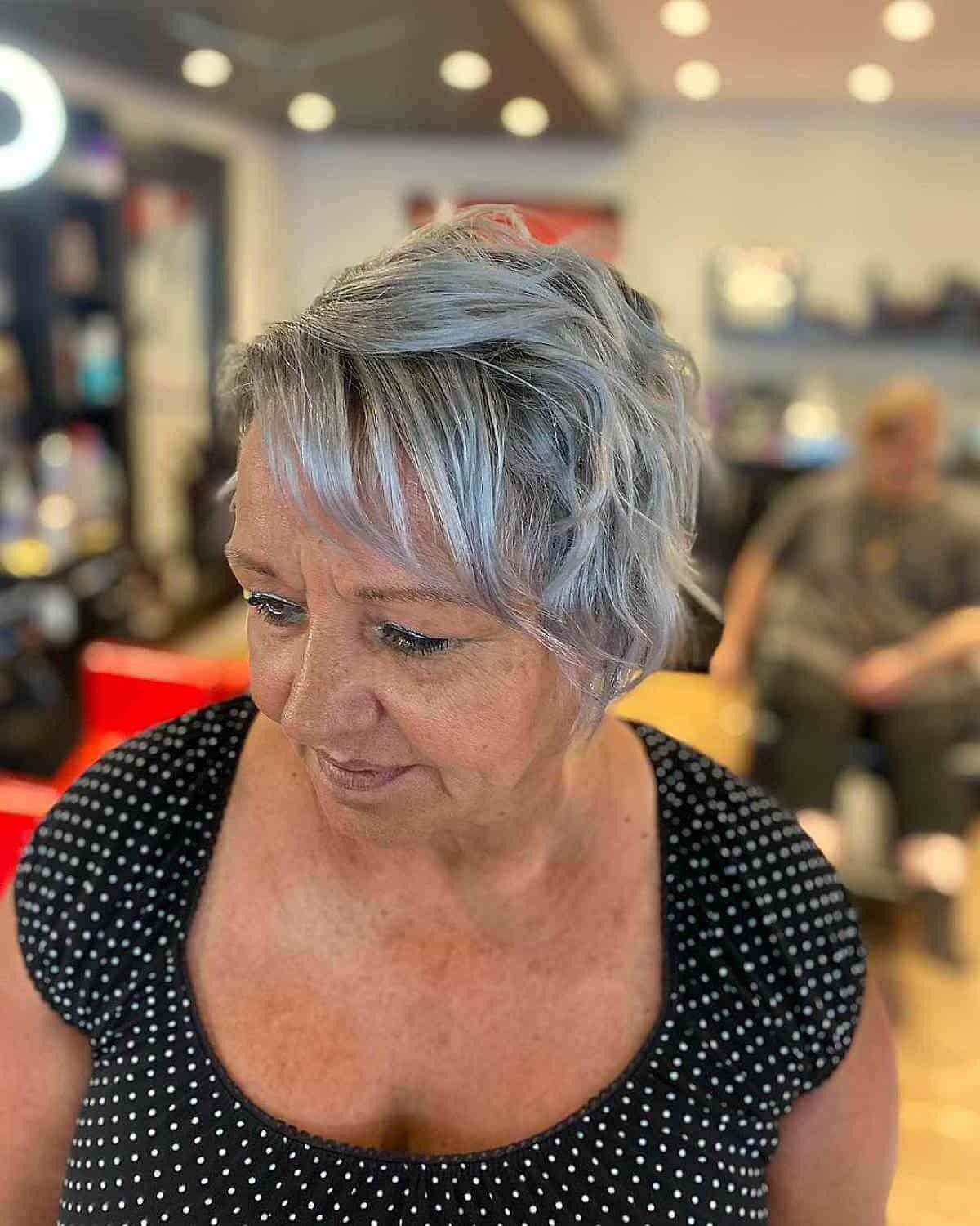 Soft pixie cuts are a fantastic choice for silver-haired women. Short hair, especially in shades of silver, can be incredibly flattering for women as they age. One of the advantages of a pixie cut is that it requires minimal styling efforts, making it an ideal option for those who prefer a low-maintenance yet elegant look.