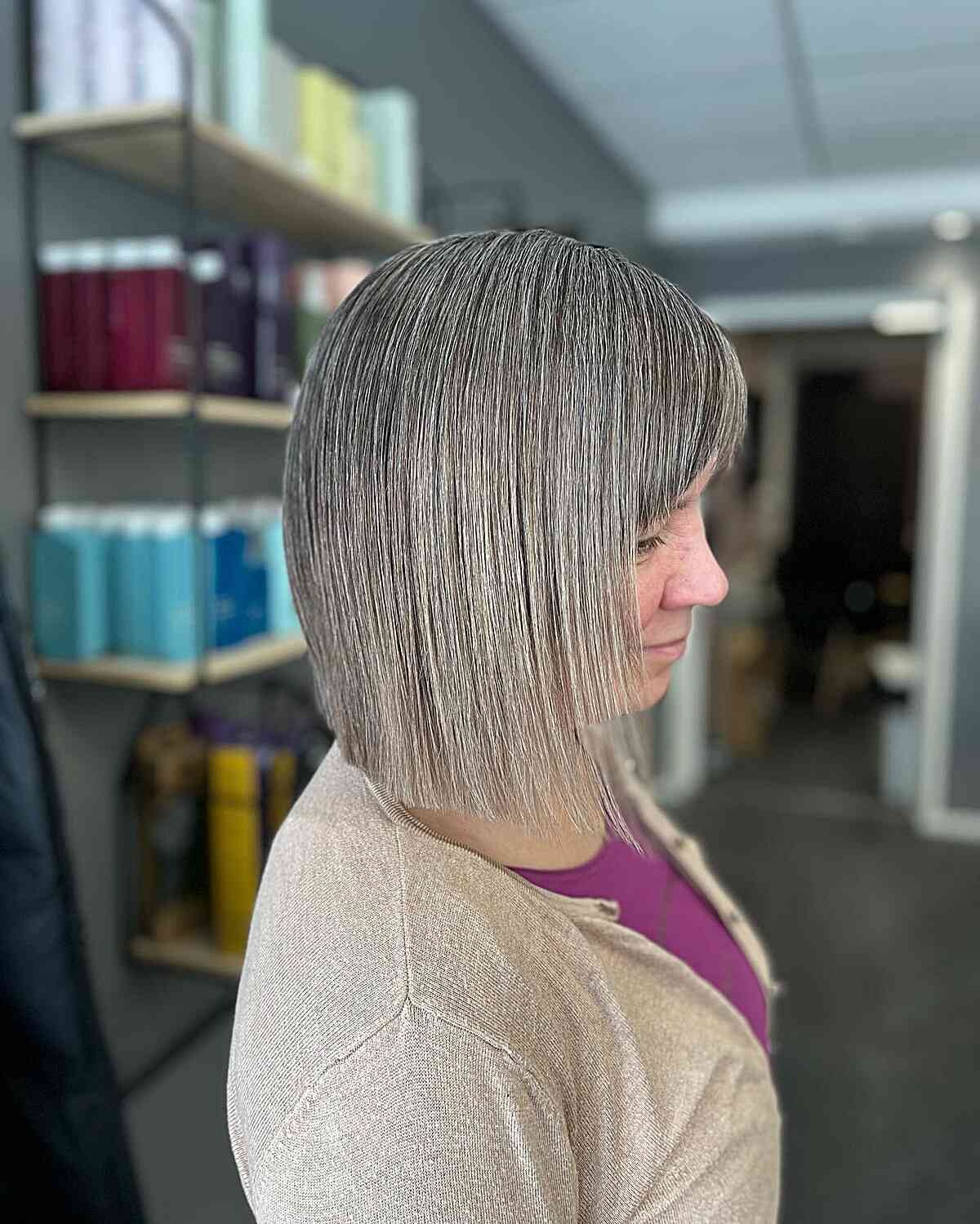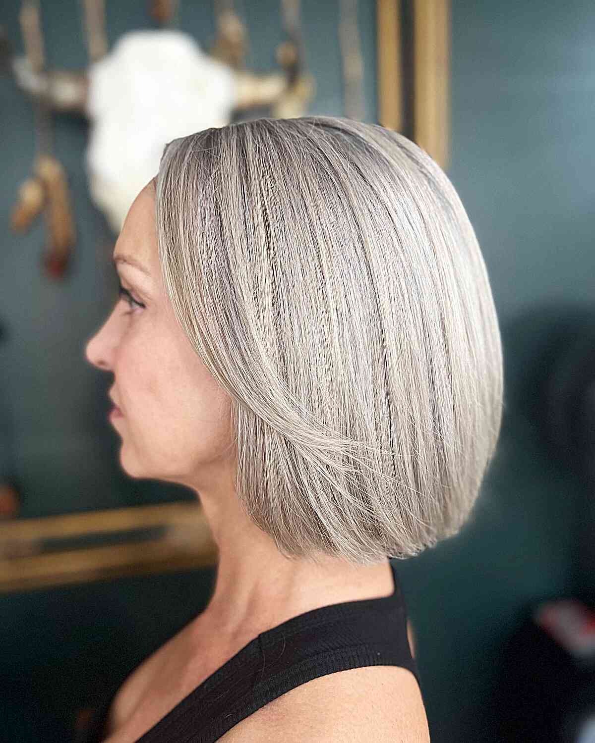 Chin-Length Hairstyle with Warm Grey Shade