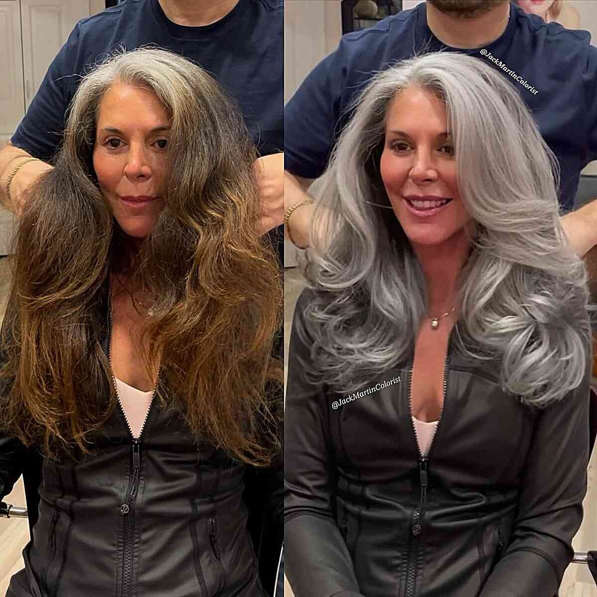 Stunning Transition to Silver Hair