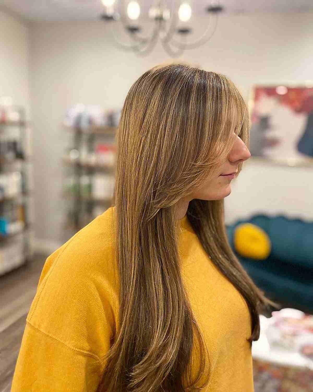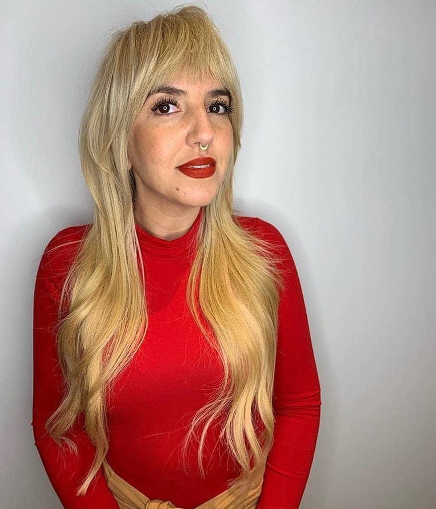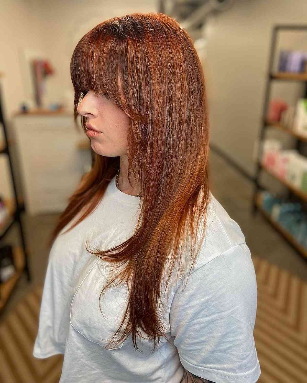 Long Shaggy Layers with Full Bangs