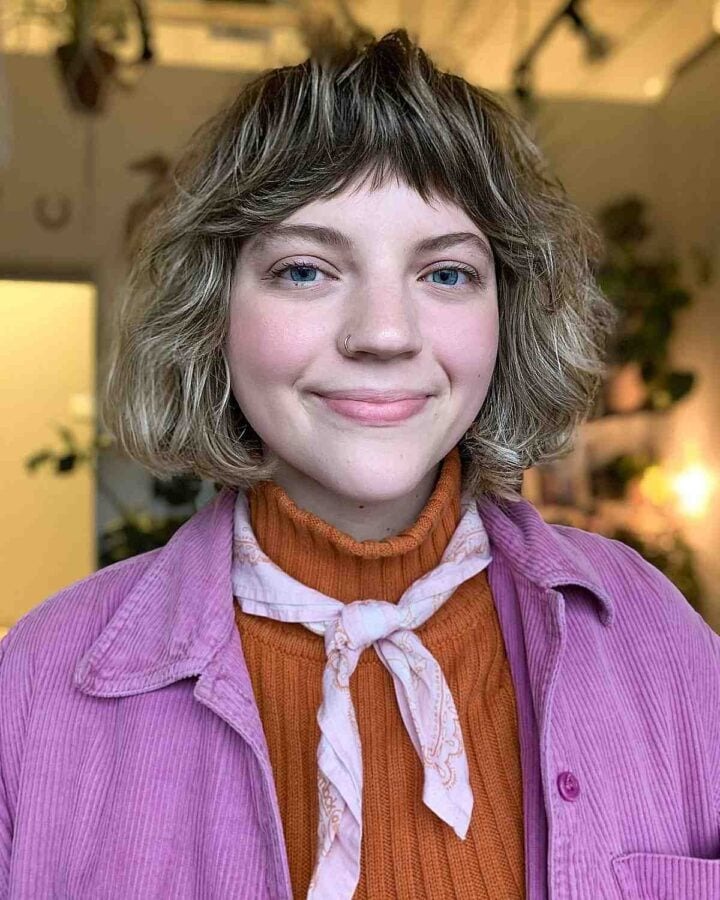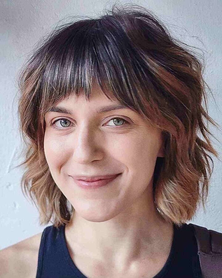 For those seeking to enhance their hairstyle’s body and volume, a wavy bob with textured bangs is an excellent choice. This shaggy cut creates the illusion of thicker and fuller hair despite its shorter length, adding dimension and movement to your look.