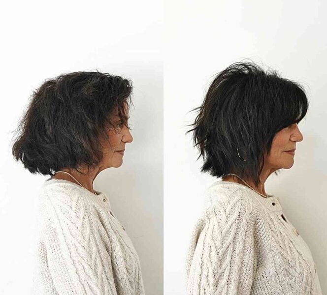 For older women, a modern short textured bob with bangs is an excellent choice as it lifts the face and adds thickness. Opting for a short bob with crown layers provides volume, while a soft, wispy face frame complements all face shapes and enhances the overall look.