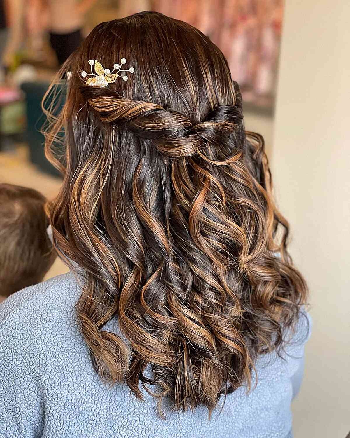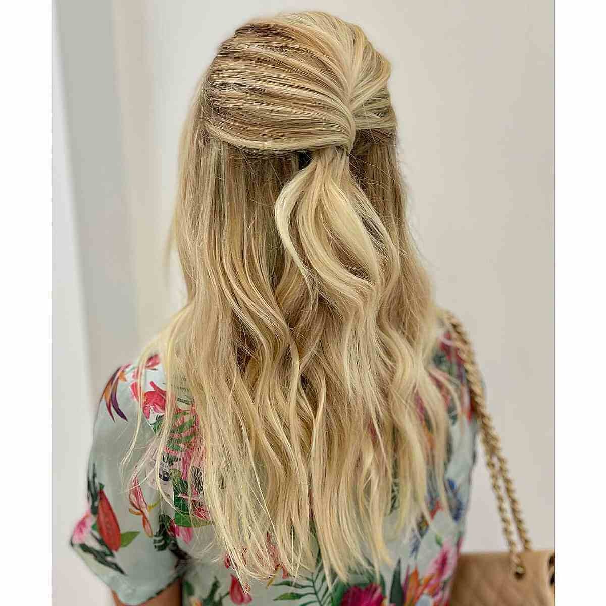 Discover a stylish way to keep your hair pulled back while maintaining an effortlessly chic look with this simple half updo. Offering the best of both worlds, this hairstyle provides a perfect balance of sophistication and ease, making it an ideal choice for various occasions and settings.