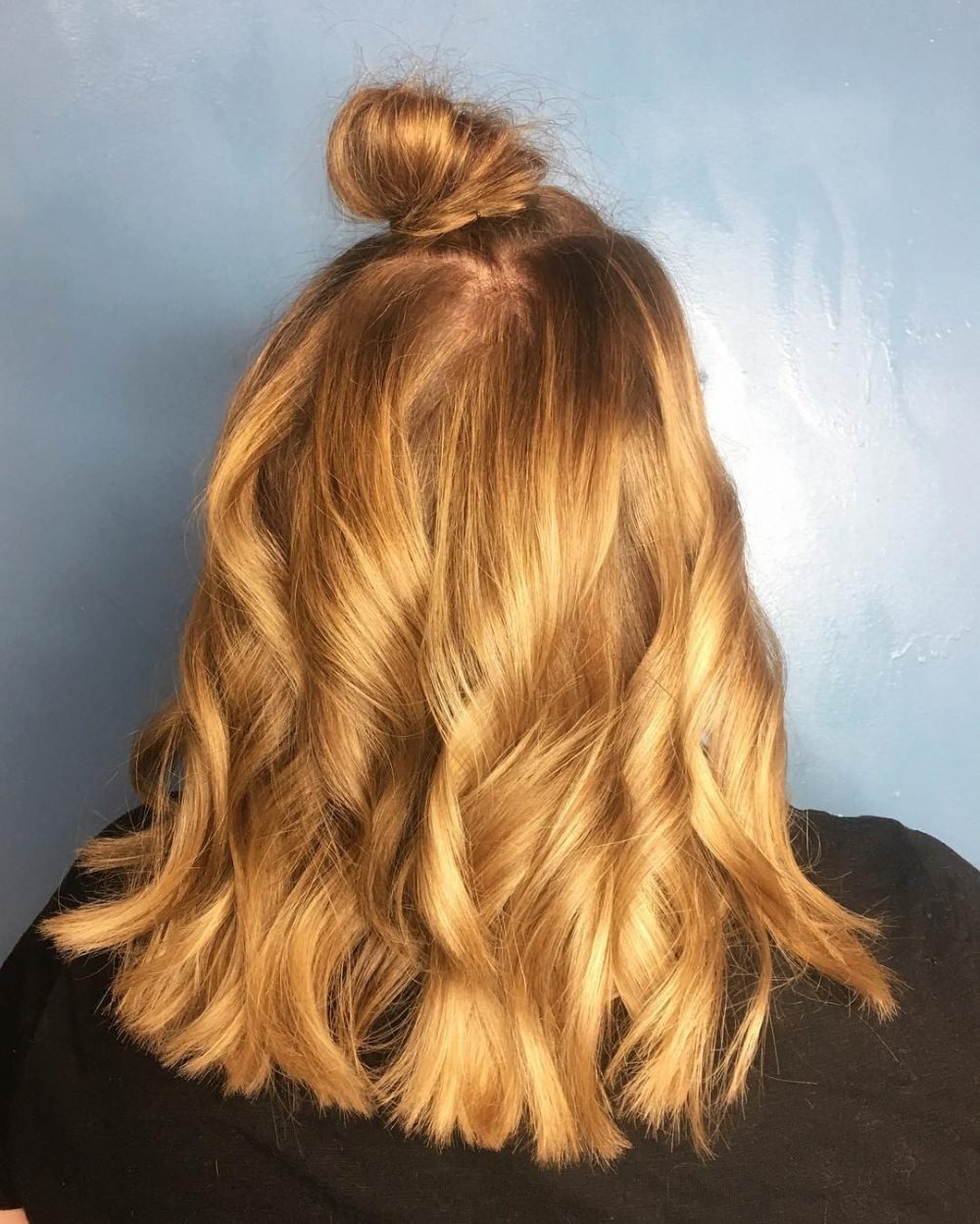 Elevate your style with a cute and spiced-up top knot twist – a DIY hairstyle featuring a messy knot that resembles a twisted bun. This playful look opens up the face by pulling half the hair up, while maintaining body and volume in the remaining strands. Perfect for a carefree and stylish vibe.