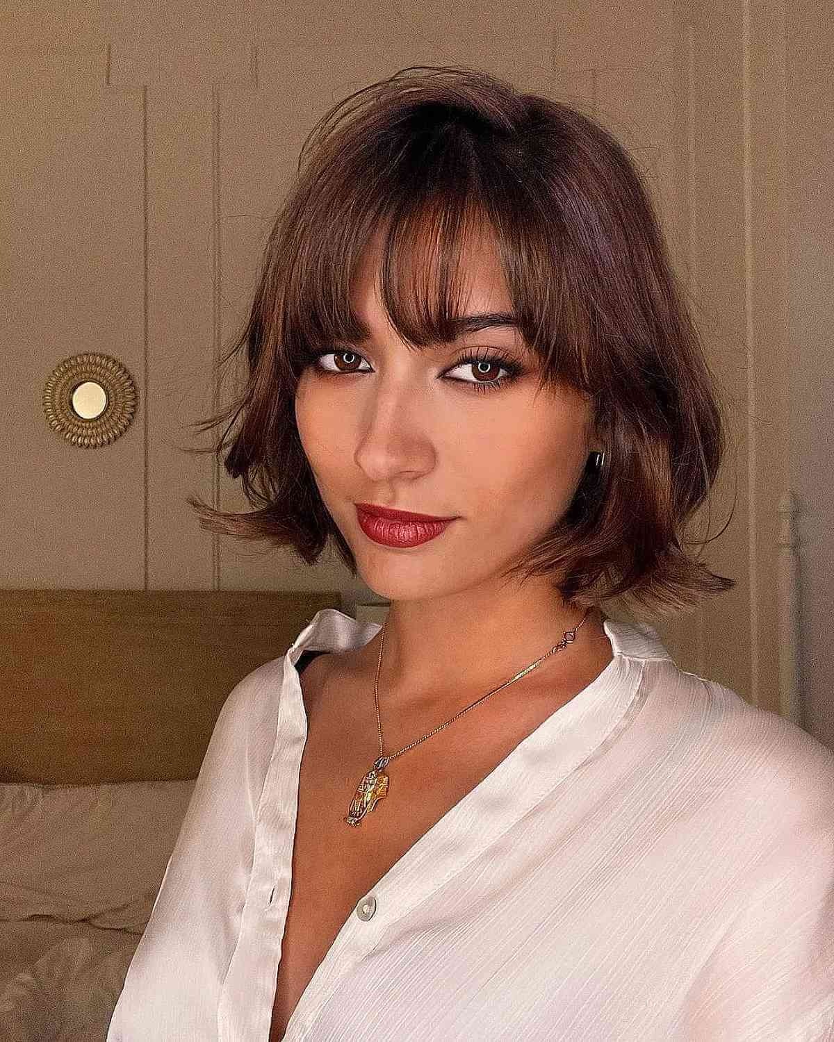 Chic Appeal with Full Fringe on a Casual Hairstyle
