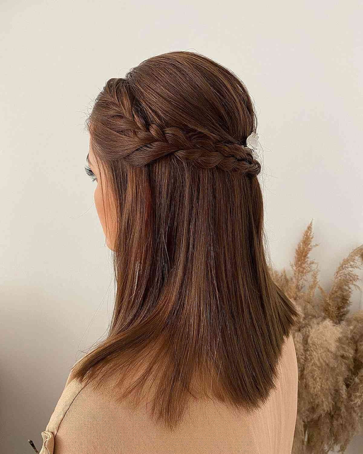 Embrace the boho, casual, and chic vibes with a French braid headband. This versatile style allows you to dress it up with a hair decoration for formal events or keep it casually chic for a night out. Additionally, it’s a great choice if you want to keep your bangs or hair out of your face for the evening, adding practicality to its stylish appeal.