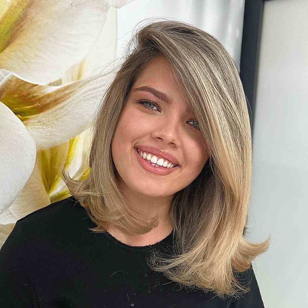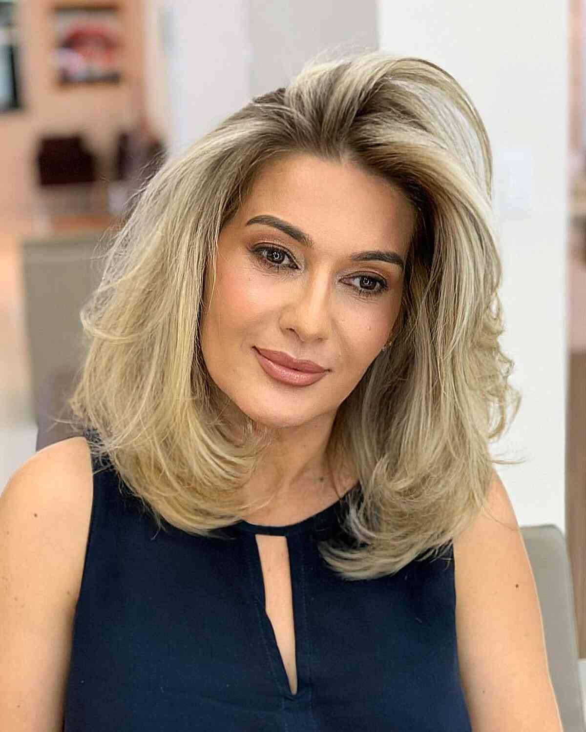 Effortless Elegance with Sweeping Blonde Shoulder-Length Hair