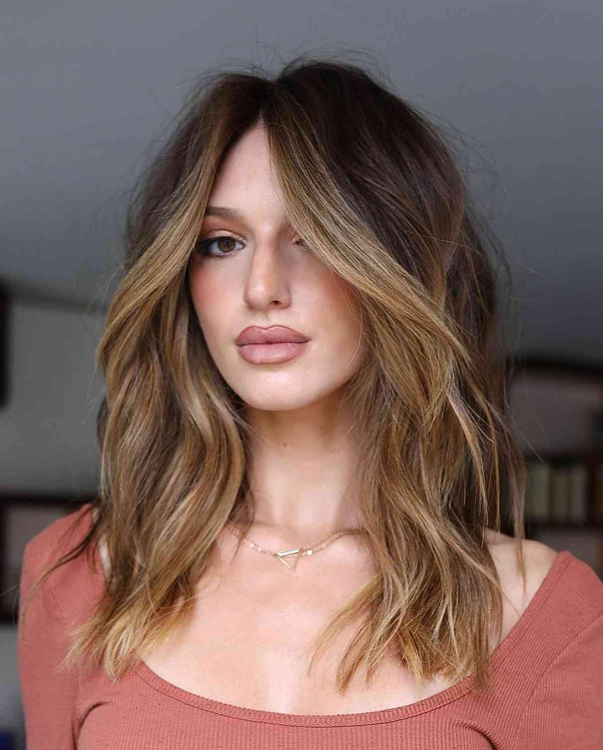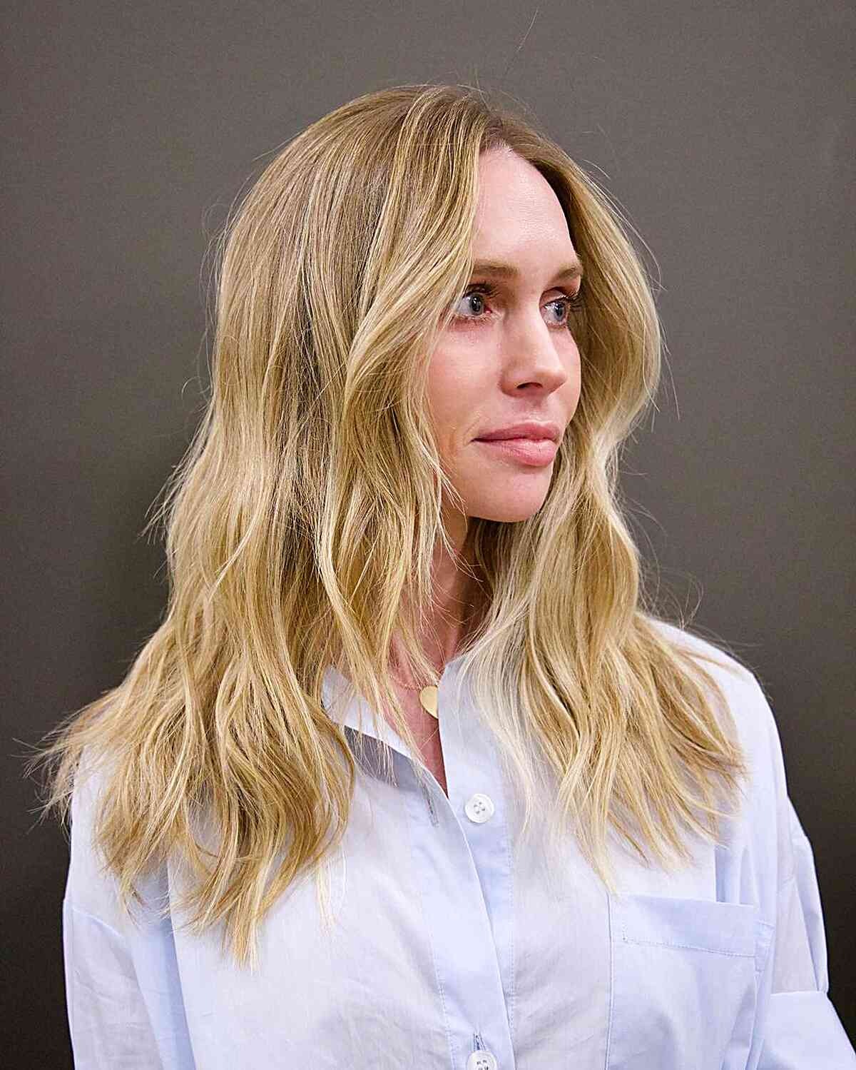Embrace everyday style with a shaggy dimensional balayage that offers low-maintenance elegance. This approach minimizes salon visits while maintaining the color and health of your hair. For styling, apply a volumizing spray to wet hair, use a large round brush for blow-drying, and complete the look with a 1 1/4-inch curling iron and a texturing spray. This effortlessly chic hairstyle adds dimension and sophistication to your everyday wear.