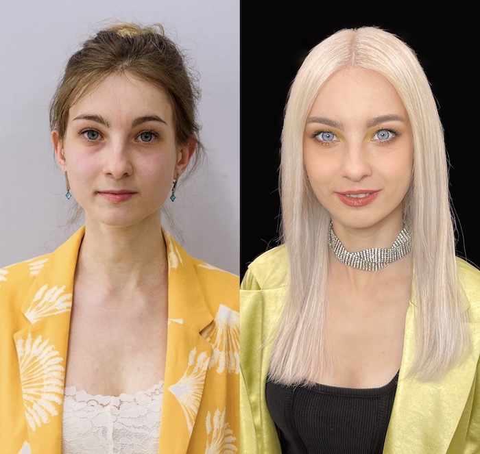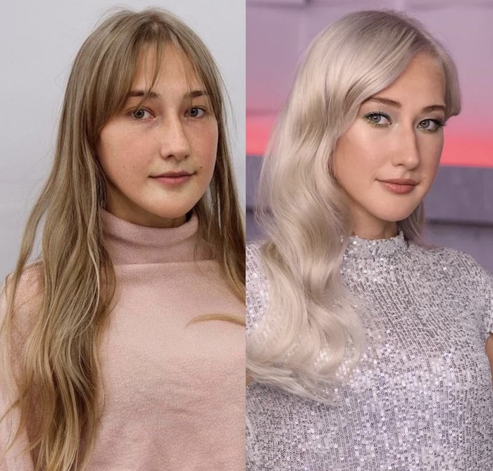 Opting for platinum blonde hair can significantly brighten your face and create a striking contrast. The cool, icy tones of platinum blonde can illuminate your complexion and add a radiant glow to your overall look, giving you a fresh and attention-grabbing appearance.