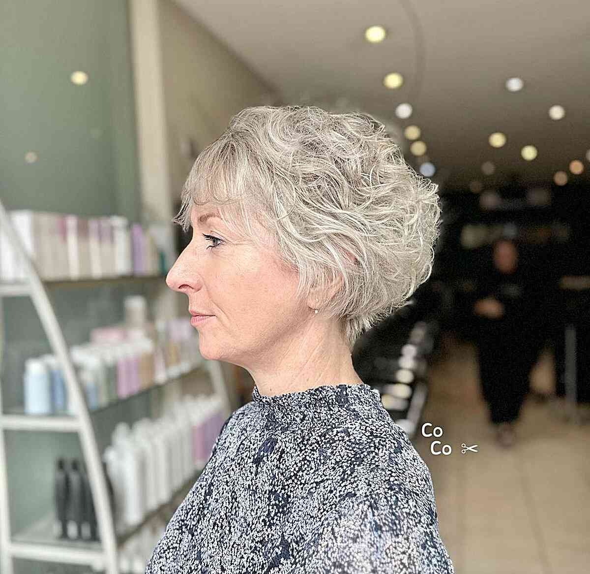 Short Curly Hair with Thin Bangs