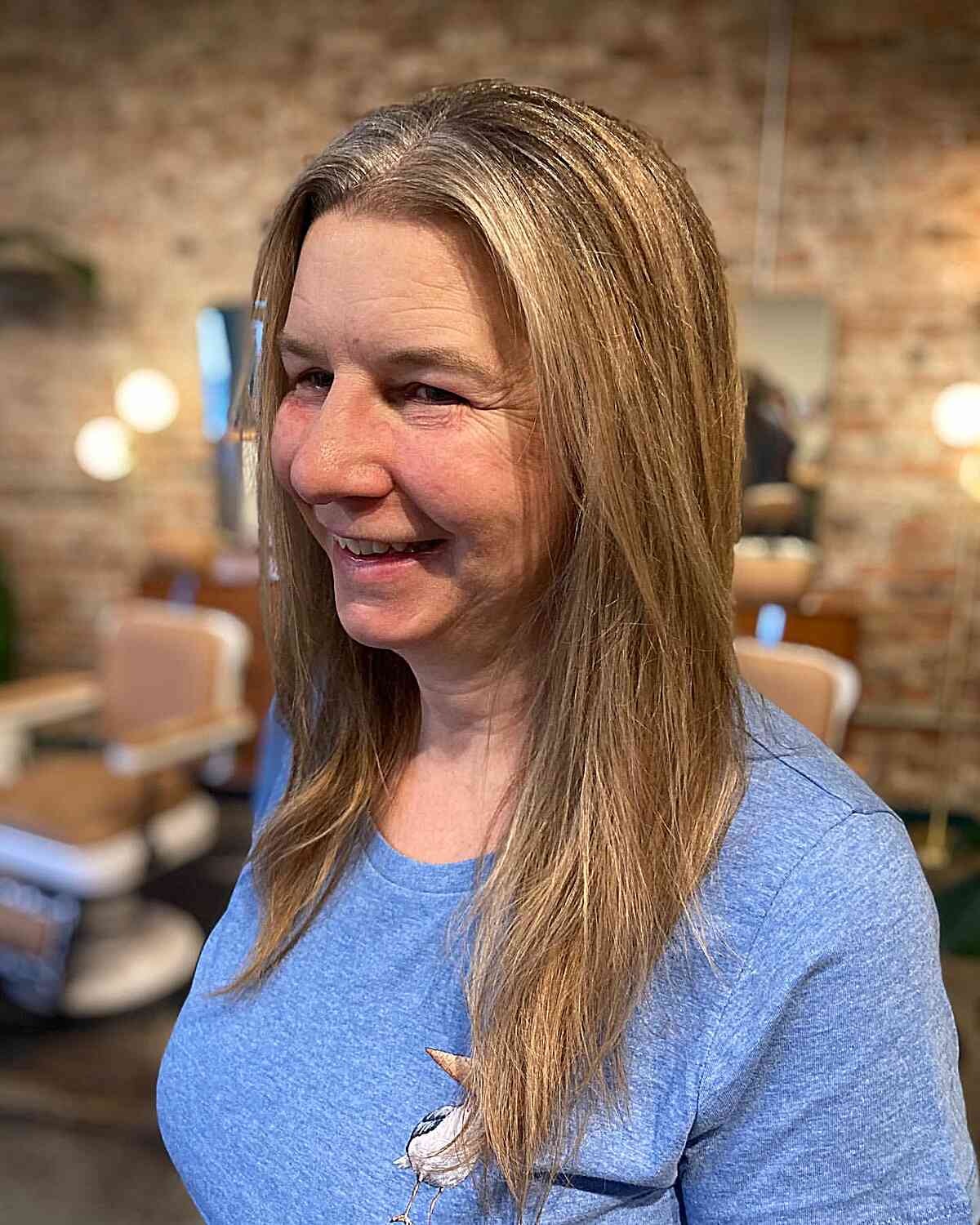 For those embracing long hair in their later years, consider a style that accentuates your lovely features. Layered hairstyles tailored for women over 60 not only boost volume and lift but also contour gracefully around the eyes and cheekbones. Incorporating highlights can introduce delightful light reflection, illuminating your hair with minimal maintenance needed.