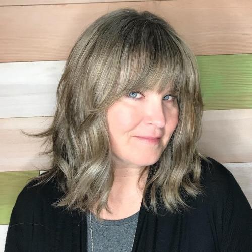 Sweeping layers and a perfectly executed blowout can elevate hairstyles regardless of age. The combination of caramel blonde and white tones in this style creates a stunning blend that exudes warmth and a sun-kissed radiance.
