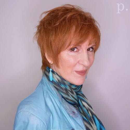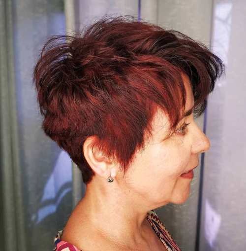 An uneven tapered pixie cut pairs wonderfully with a bold and vibrant color choice, creating a distinctive and stylish look.