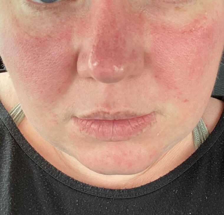 Unexplained redness on your face, particularly in a butterfly shape covering the nose and cheeks, may indicate a rash and, in rare instances, could be a sign of lupus.