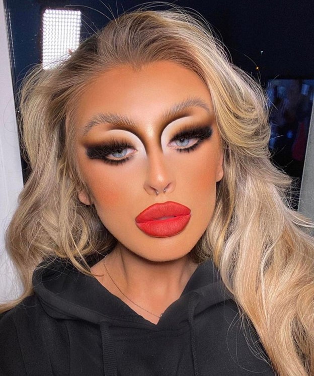 From the white eyeliner to the orange tone, it’s just not a good look.