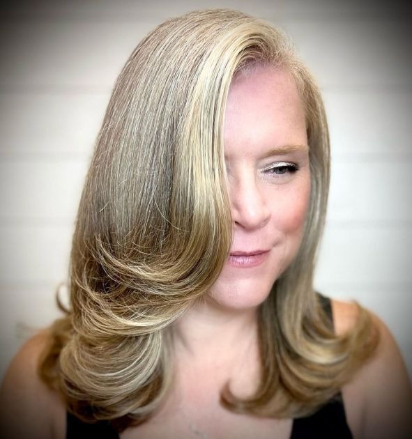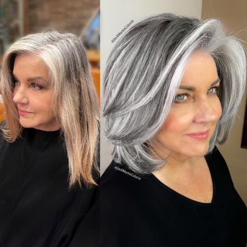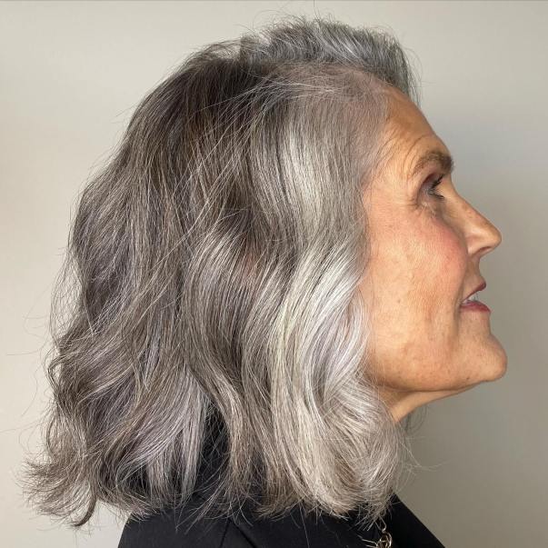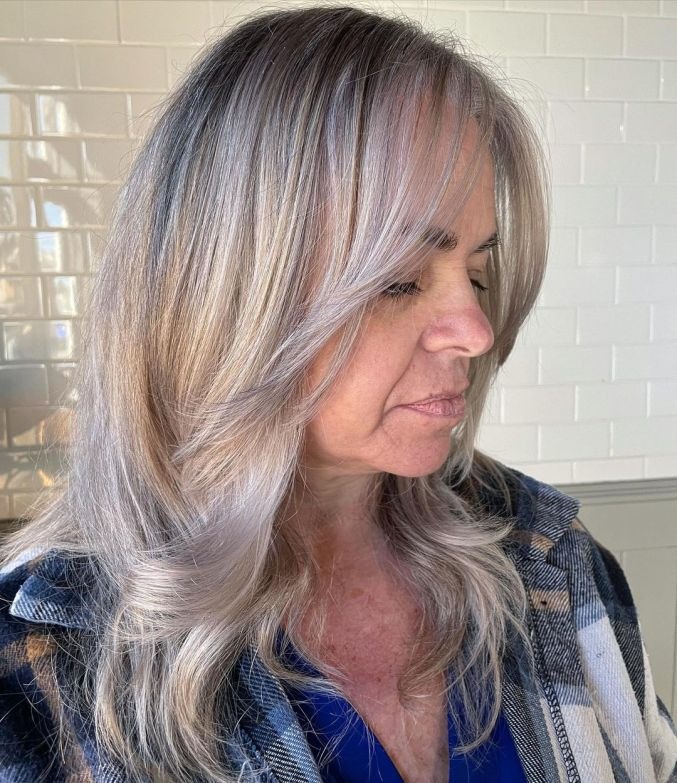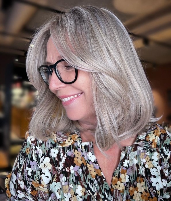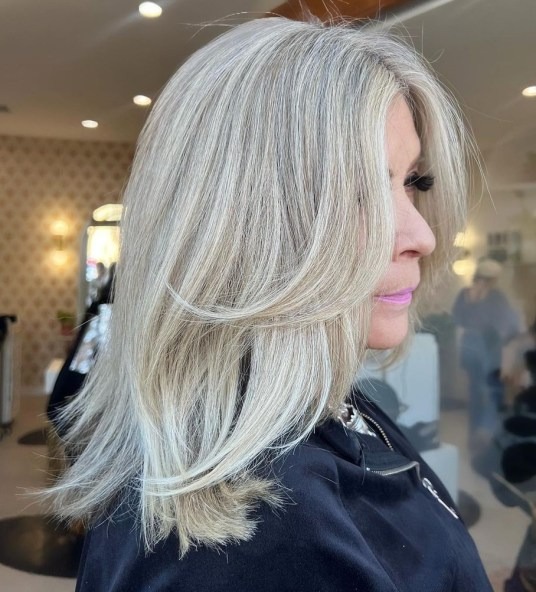 Embrace the natural flow of your hair and surrender to the force of nature by opting for a gray-blonde balayage that beautifully complements your natural grays. Icy blonde tones work wonders for older women, exuding a graceful and elegant charm that effortlessly enhances your overall appearance.