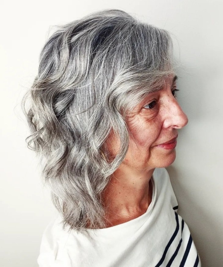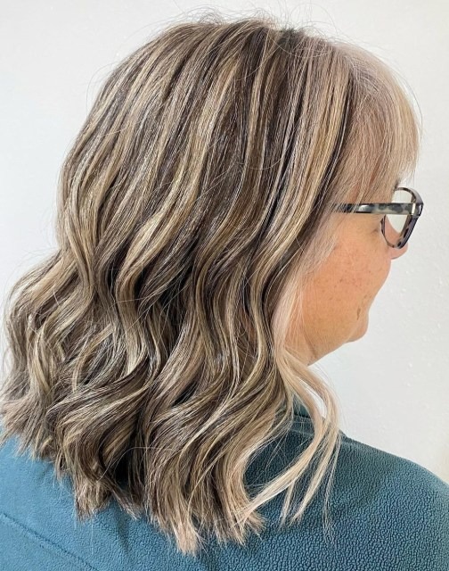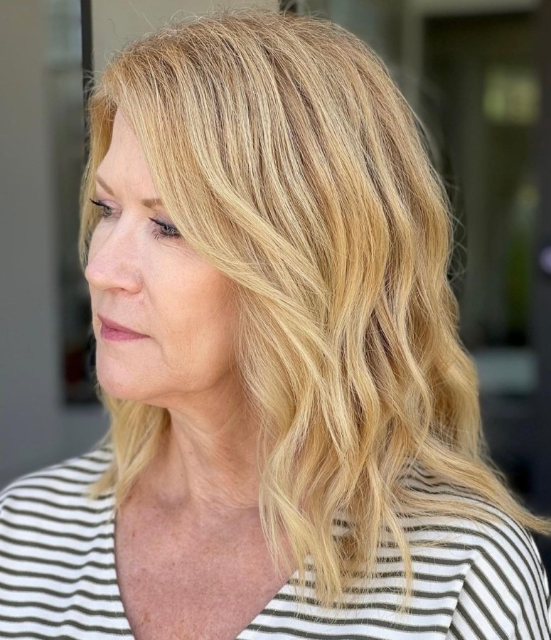 Elegance knows no age, and it’s beautifully exemplified in the chic and classy attitude. The cascade of loose waves, gleaming in an exquisite shade of blonde, undeniably embodies sophistication. This lustrous hairstyle exudes an air of grace and refinement, making it an ideal choice for senior women who appreciate timeless elegance. The harmonious blend of texture and color speaks volumes about class, offering a medium-length hairstyle that effortlessly combines poise with a touch of fabulous allure, ensuring that you look and feel absolutely stunning.