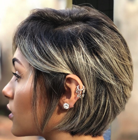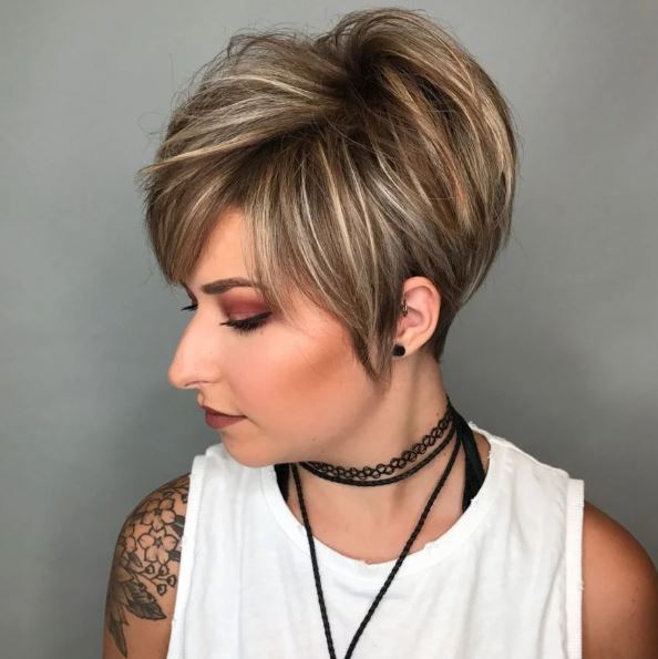 One way to emphasize the layers in your short hairstyle is to add in some highlights. The highlights in this haircut accentuate the rounded pixie bob so well that it looks to give it more volume.