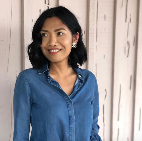 The hairstyle of, “A soft rounded bob with shorter layers cut at the top gives your roots the lift they need and also creates nice movement. In case your roots don’t lift easily, grab your favorite volumizing spray and you’re good to go!”