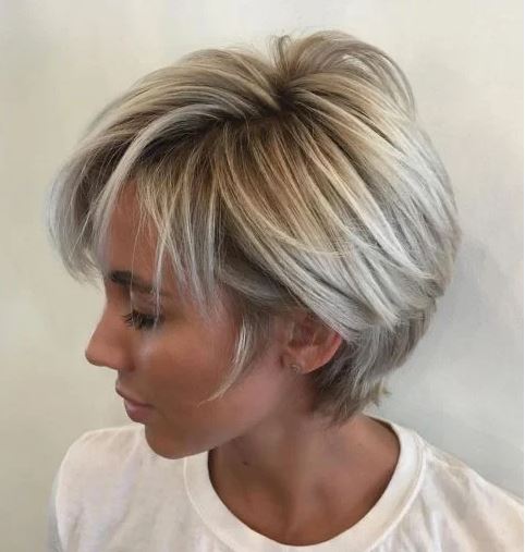 The blonde balayage coloring is perfect for this longer pixie cut. It is stated that,