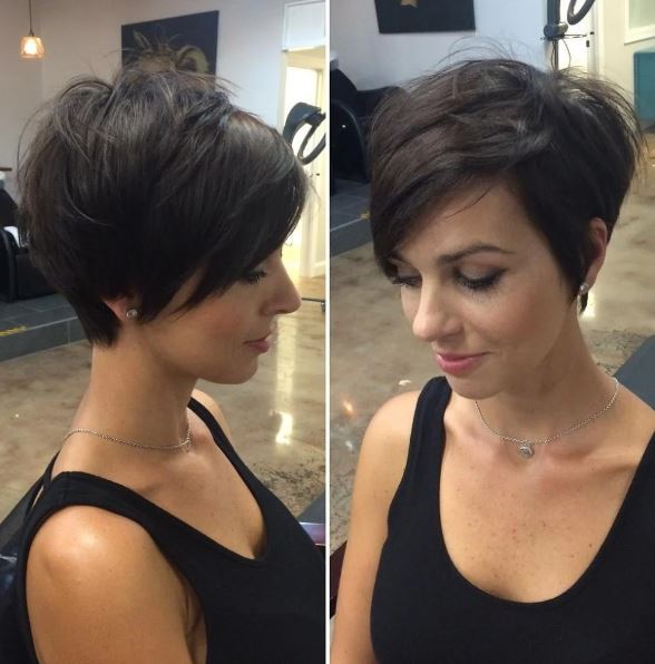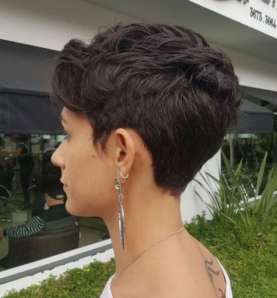 If one of the reasons you are nervous to get a short hairstyle is because it might make you look like a school boy, do not worry. This really short hairstyle knows how to combat this worry, by completing a feathered pixie cut. This cut is described as,