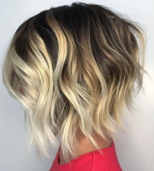 It is not only in couples that you will find opposites attract but also in hair colors! A very trendy hairstyle right now is having a very dark root color that turns into a bright blonde. This inverted and choppy bob goes well with the dark root and blonde hair combination.
