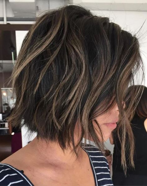 This tousled bob look is for those looking for a more casual looking hairstyle. This unique bob added in side bangs and wispy layers to define a more casual style. This looks like the perfect summer haircut.
