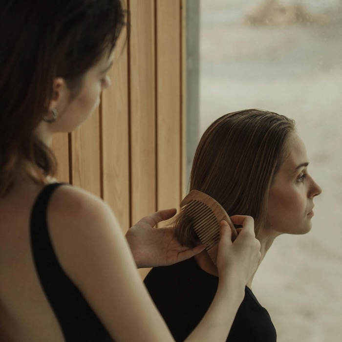 Gently dab your wet hair with a soft cotton T-shirt instead of a towel. Cotton is gentler than terry cloth and helps remove excess moisture without causing frizz. This technique can also help reduce hair breakage and maintain your hair’s natural texture.