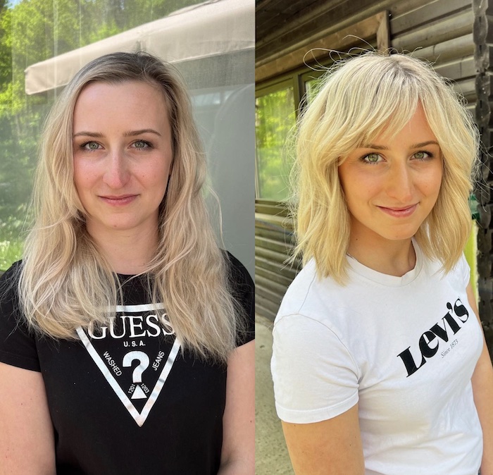 Trimming out the sides and chopping the bangs kept her hairstyle even cleaner.